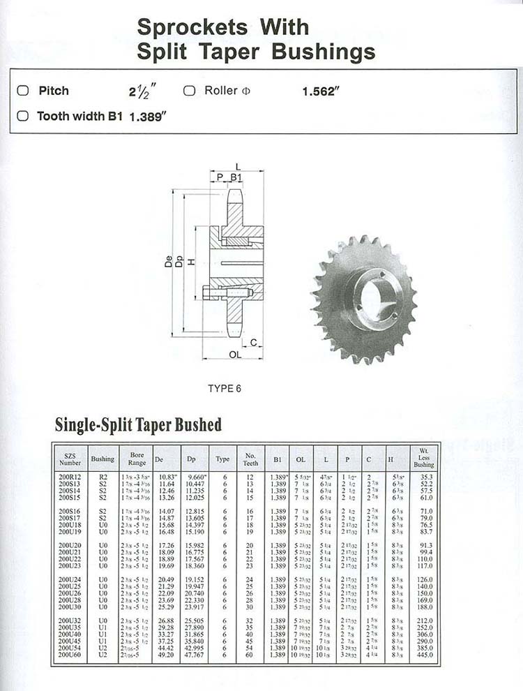 Sprockets With Split Taper Bushings NO.200