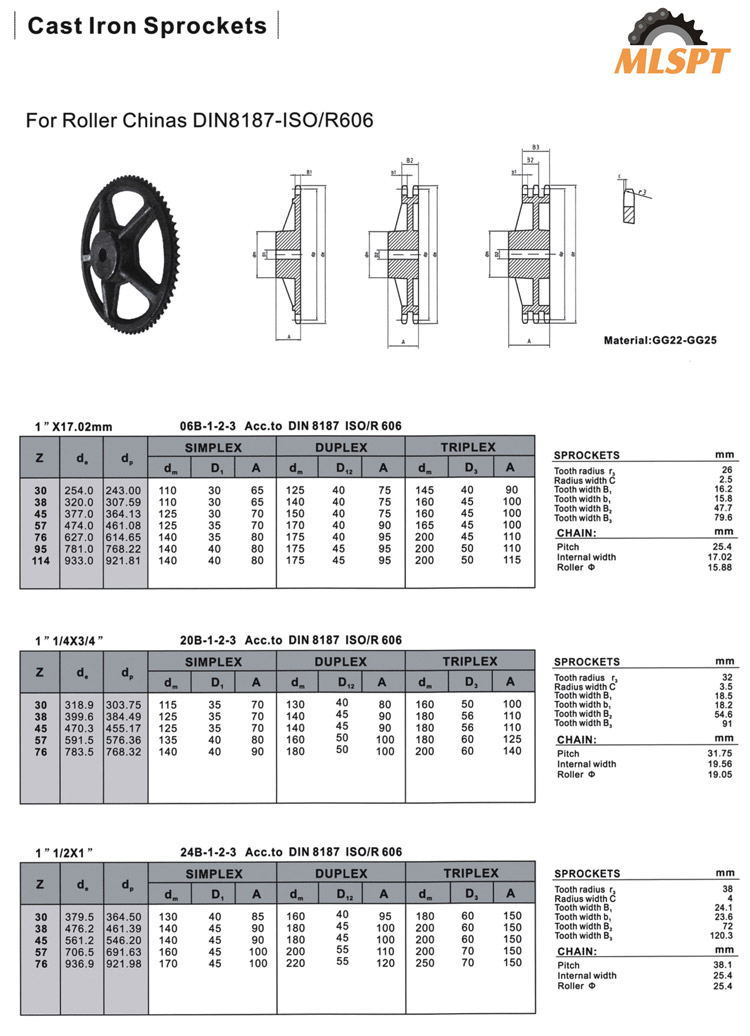 1”X17.02mm 1”1/4X3/4”1”1/2X1”